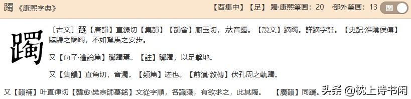 意思是以足击地,顿足;徘徊不进貌;杜鹃花的别名。又名映山红。
