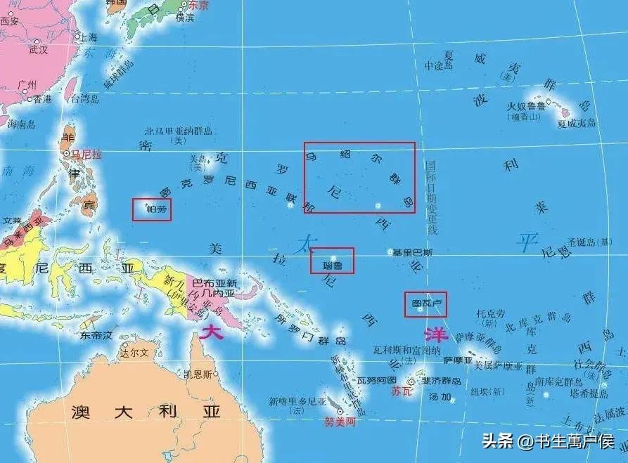 我们先从大洋洲开始说起,在大洋洲台湾一共有四个所谓的邦交国。分别是瑙鲁,帕劳,图瓦卢,马绍尔群岛。