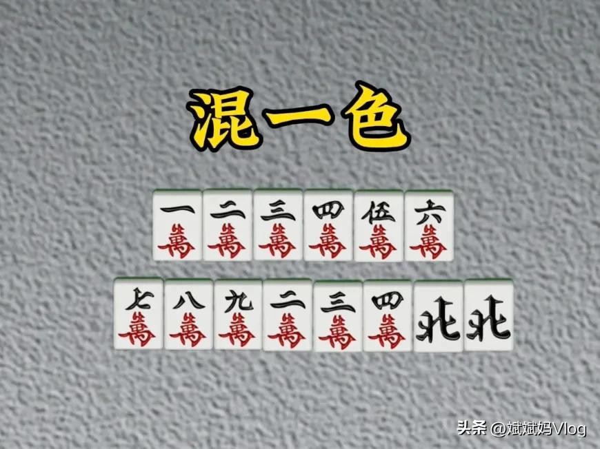 混一色就是由同一种花色的序数牌和字牌组成的胡牌。(如下图):