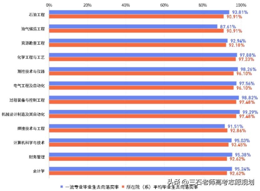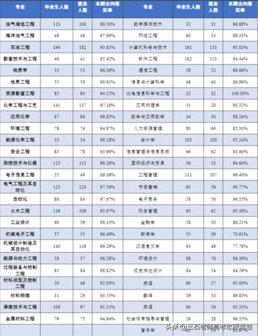 下面分析西安石油大学的各专业就业情况。其中,海洋油气、石油工程、地质学、电气、自动化、能源化学、机械等专业的就业情况最好,人均拿到录用书的张数多。