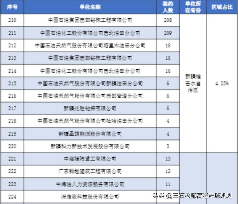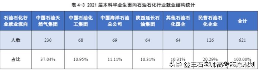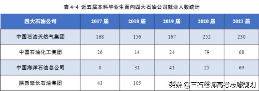 从下表中可见,每年西安石油大学进入石油石化行业的人数在10~15%的比例,其中去中石油的人数最多,每年有200多人。