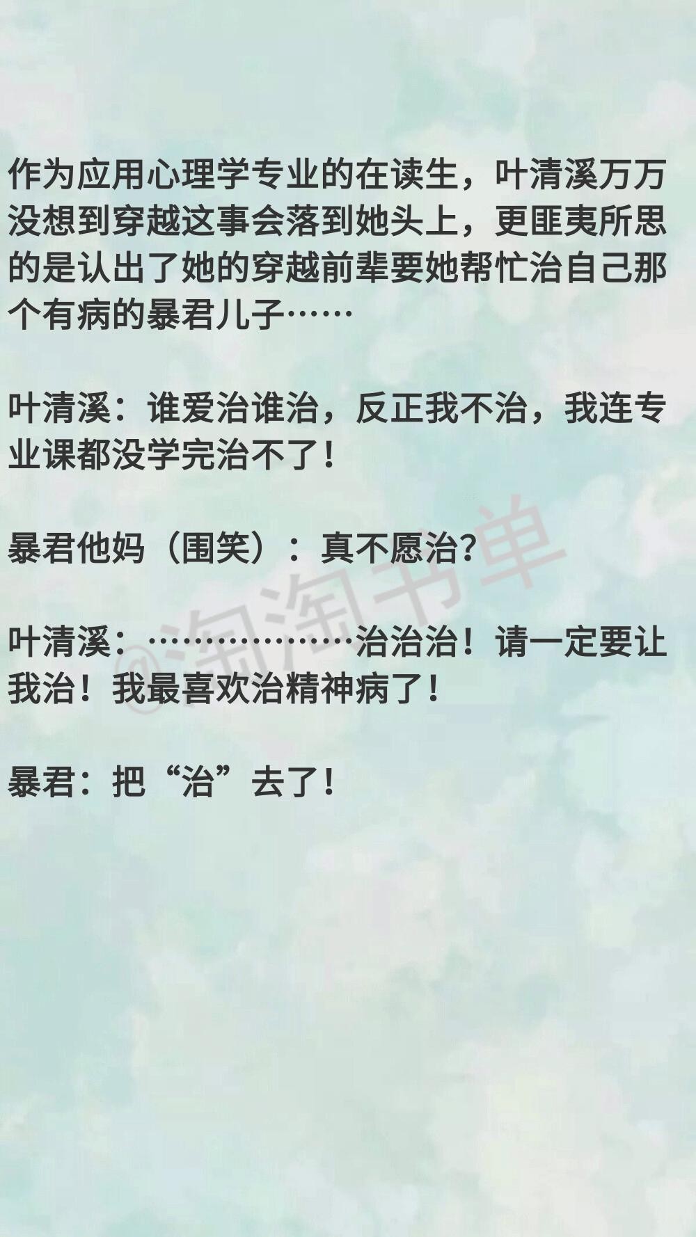 发现男主是暴君设定的小说,还蛮好磕的。淘子喜欢看的是三类小说,一个就是男主算糙汉吧,糙汉宠娇妻。一个就属于男主性格反复无常小病娇,女子就专门治病。算治愈类型的。还有就是男主真的冷血,但因为女主变得有温度了。好了,下面开推~