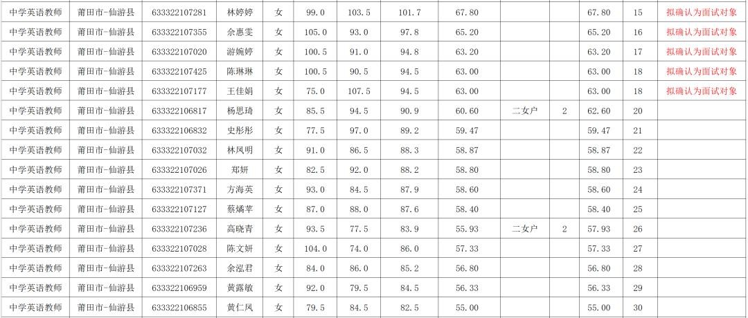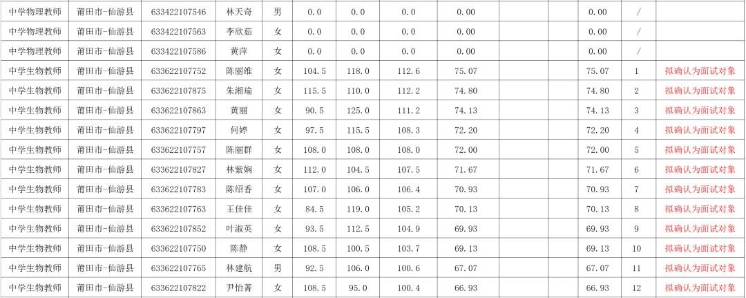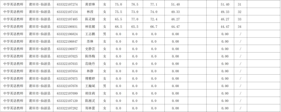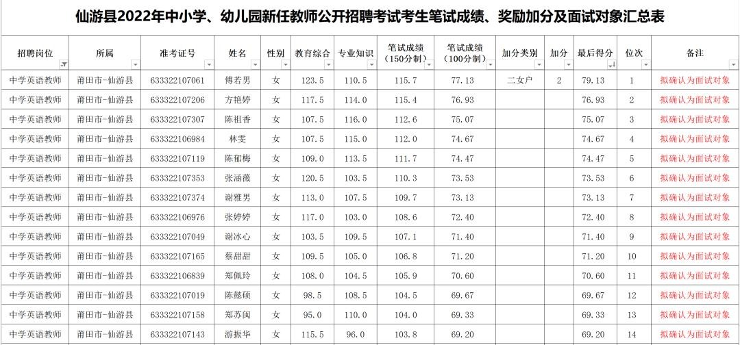 仙游县2022年中学、小学、幼儿园新任教师公开招聘考试考生笔试成绩、奖励加分及面试对象的公告