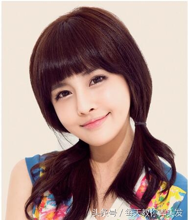 娃娃脸女生齐刘海发尾剪得碎碎的,散落在眼睛上方,轻透出细细的眉毛,很是有呼吸感,凸显出明亮的眼睛,单纯可爱的气息就散发出来了,将中长直发在脑后简单的扎成马尾辫,更显校园女生的清纯美好。