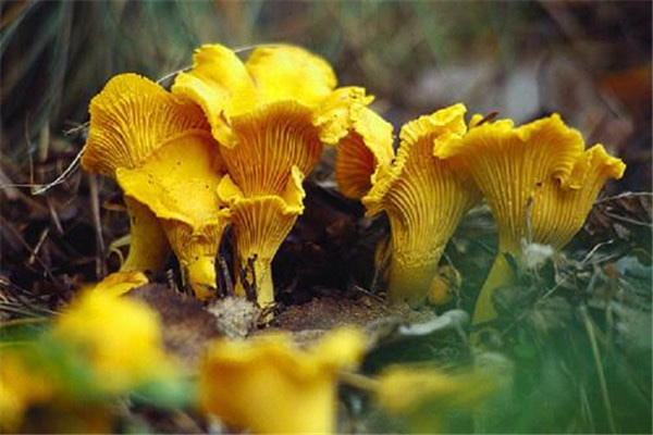 鸡油菌又叫鸡蛋黄菌、黄菌、杏菌,其子实体为喇叭形,颜色为蛋黄色或杏黄色,菌盖宽10厘米,边缘呈波浪状,菌柄为8厘米,主要分布在我国东北、华北、西南等地。