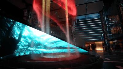 它位于迪拜市中心标志性建筑迪拜购物中心内,面积达2700平方米,配置有130台投影机和扬声器,通过3000个高清数字移动图像,将标志性和当代艺术代入生活。同时还拥有迪拜购物中心最大数字显示屏,其面积为200平方米。