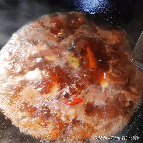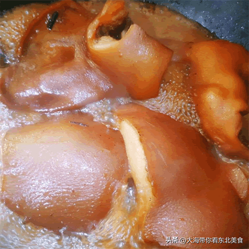 10:期间多翻动几次,让猪头肉均匀上色。