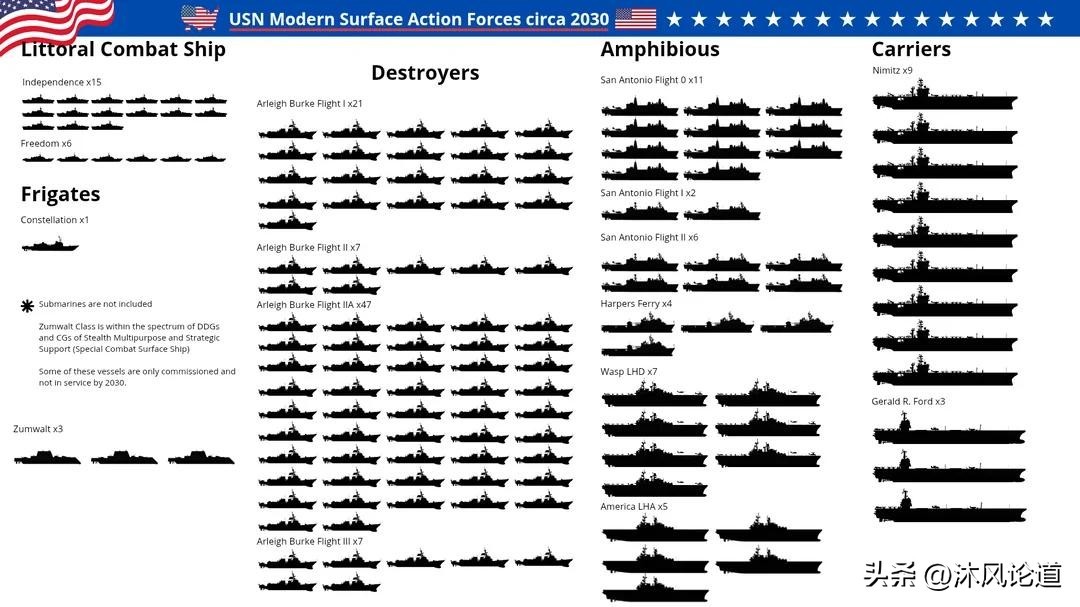 2030年,美军大概率将装备伯克级驱逐舰,而中国海军将是055型驱逐舰为核心,052D型驱逐舰为中坚等,驱逐舰数量相接近,质量有着不小差距。055型驱逐舰达到16艘,也是非常值得可喜可贺。凭借强大的作战能力,形成独特的海上威慑力。