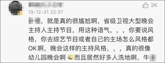 不少网友认为其“像在主持幼儿园晚会”“又不好笑又尴尬”。