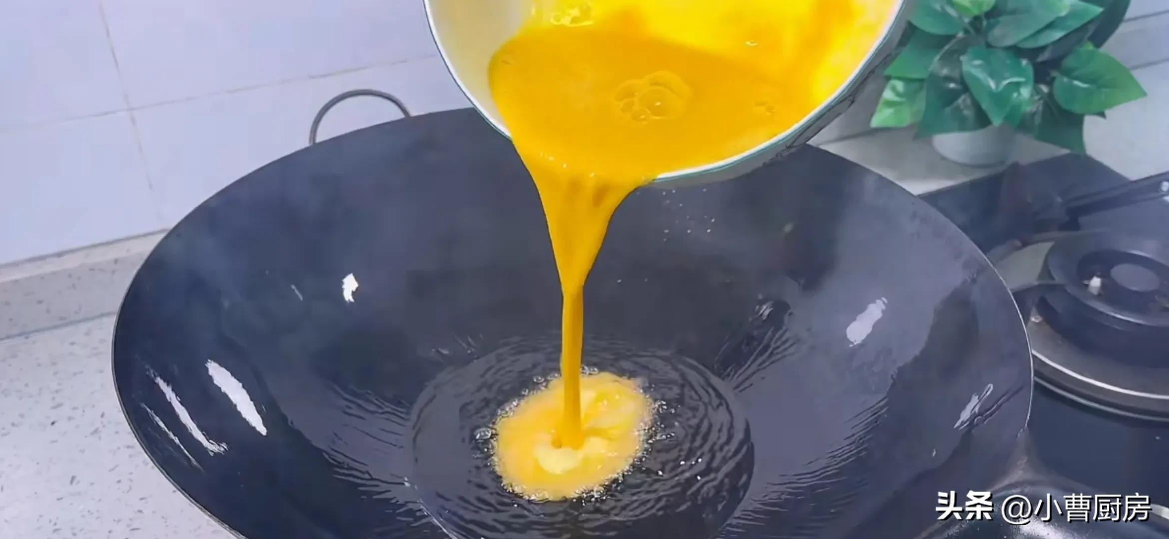 然后起锅烧油锅里边加入适量的食用油,给油烧热锅里边烧至冒烟的时候,把打好的鹅蛋倒进来,油一定要烧热不然烘出来的鹅蛋不蓬松。