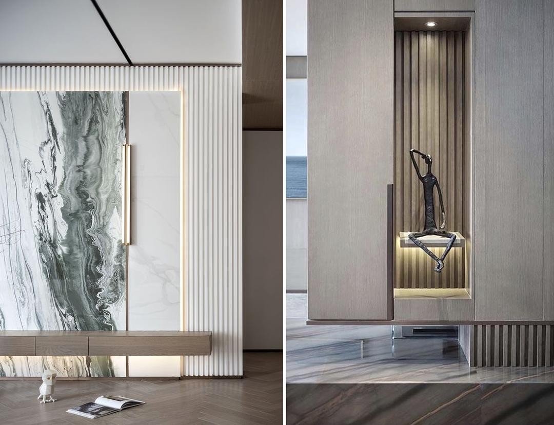 凹凸设计手法是指在空间内设计不规则的视觉效果,即可增加室内的利用率,又能凸显和强调设计区域,彰显个性。
