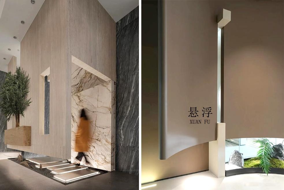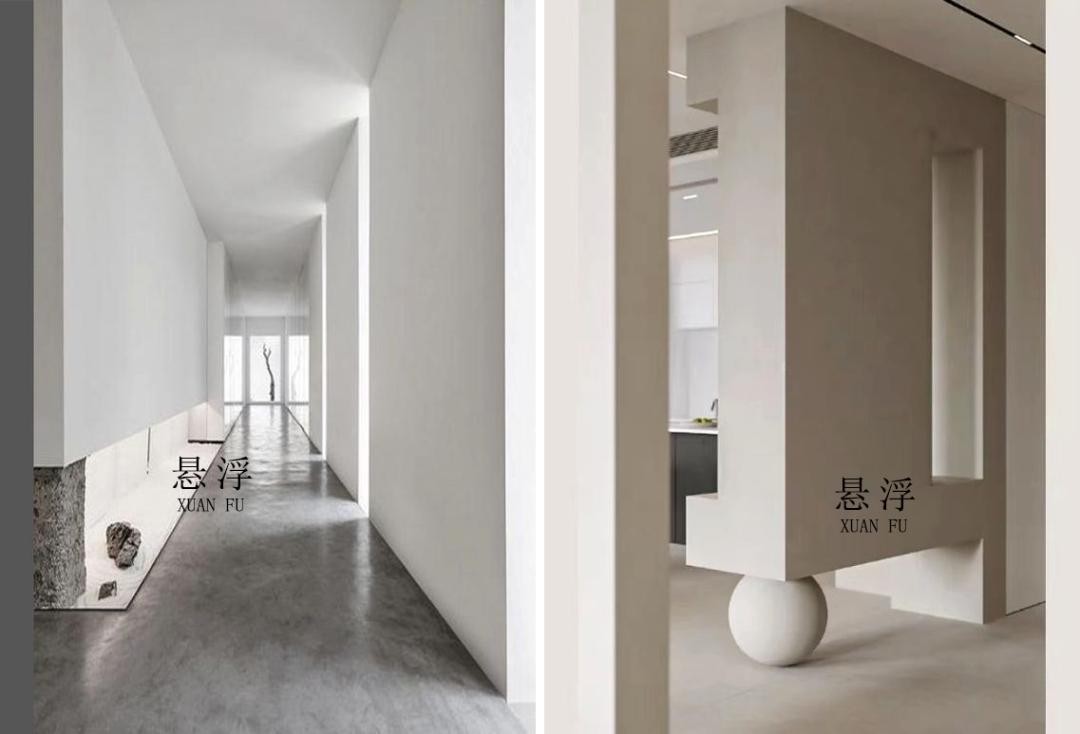 悬浮设计手法是指是对象与地面/墙面/天花预留一定空间,在视觉上产生悬空的效果,缓解空间局促感。