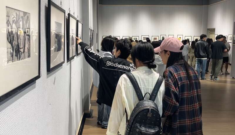 大学师生在认真观展。中青报·中青网记者 潘志贤/摄