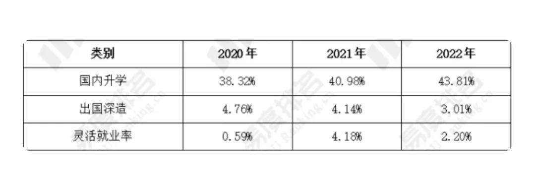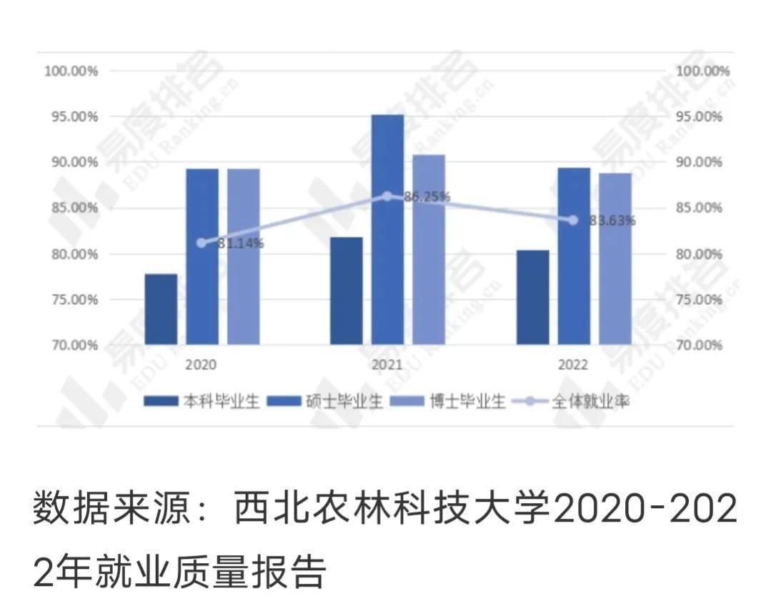 就业率不高,工资待遇一般。那么我们看看西北农林科技大学升学情况,2025年国内升学率38.32%,2025年国内升学率40.98%,2025年国内升学率43.81%.升学热情逐年上升,升学率稳步提升。