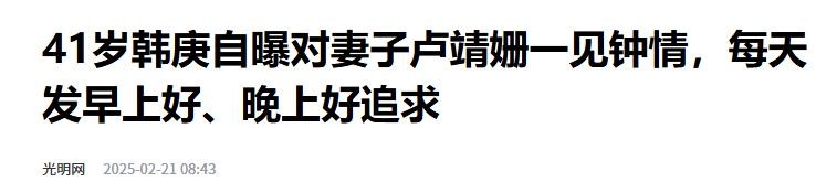 光明网:41岁韩庚自曝对妻子卢靖姗一见钟情,每天发早上好、晚上好追求
