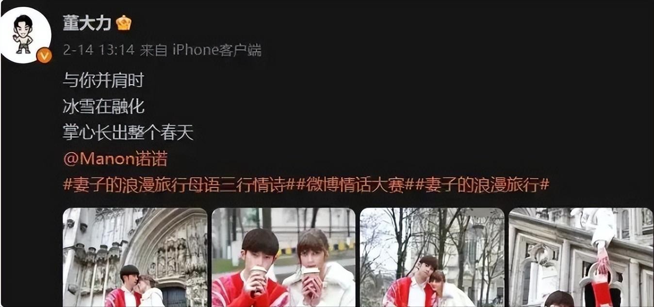 原来,董力即将要参加《妻子的浪漫旅行》,所以才会选在现在这个时候官宣。