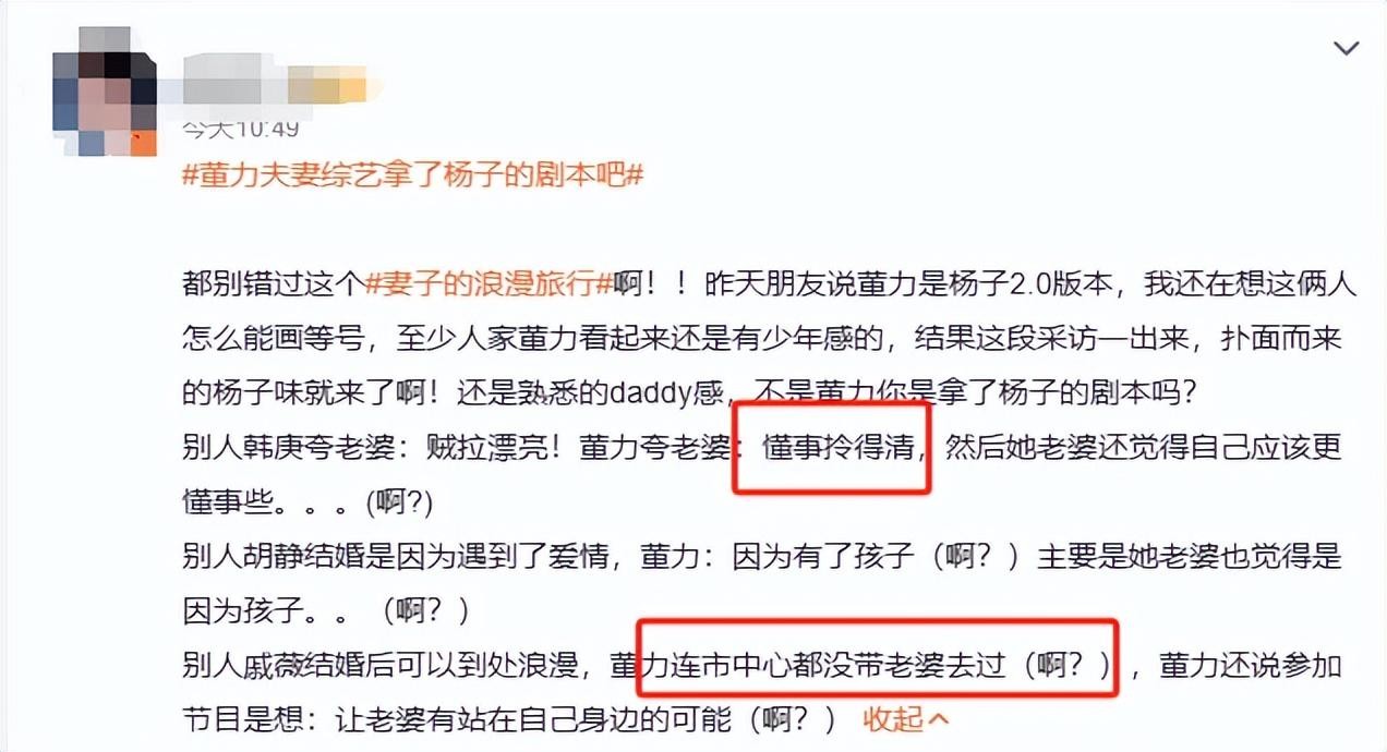 谁能想到,董力夸老婆的话竟然就只是:懂事拎得清。