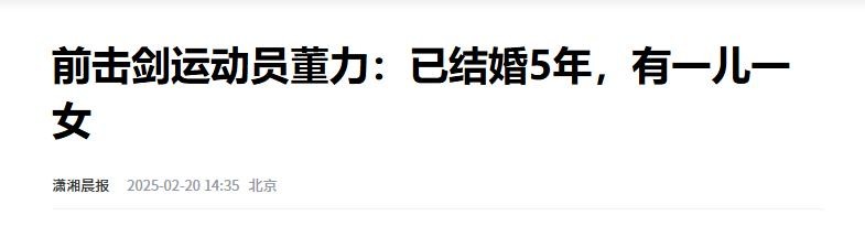 潇湘晨报:前击剑运动员董力:已结婚5年,有一儿一女
