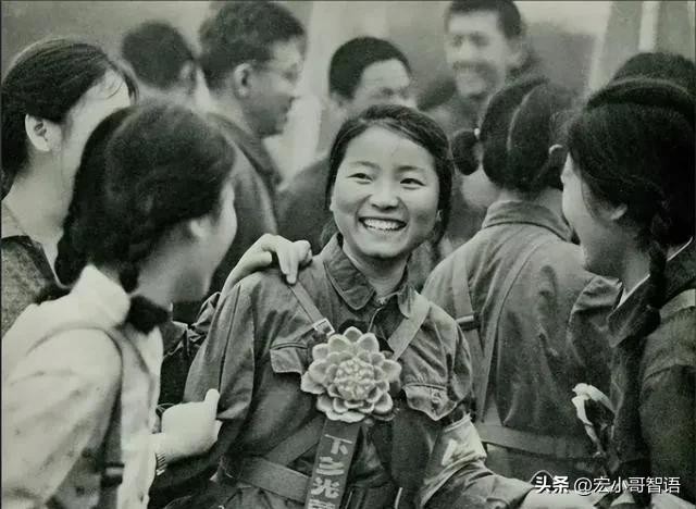 在一张近距离拍摄的照片中,女知青的颜值超高。她笑起来甜甜的,特真诚,仿佛能把周围都照亮似的。她的眼睛微微眯着,嘴角上扬,给人一种温暖、亲切的感觉。这个微笑是如此的自然和纯真,让我们感受到了那个时代的纯真和美好。