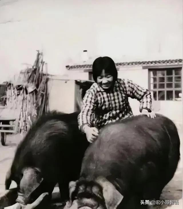 还有那张逗趣的照片,女知青正在给两头大黑猪喂食。那两头猪个头巨大,肥膘吓人,仿佛一不小心就能把女知青撞倒。但女知青却毫不畏惧,依然面带微笑地给它们喂食。她的笑容仿佛能感染一切,让我们也感受到了那份乐观和勇敢。