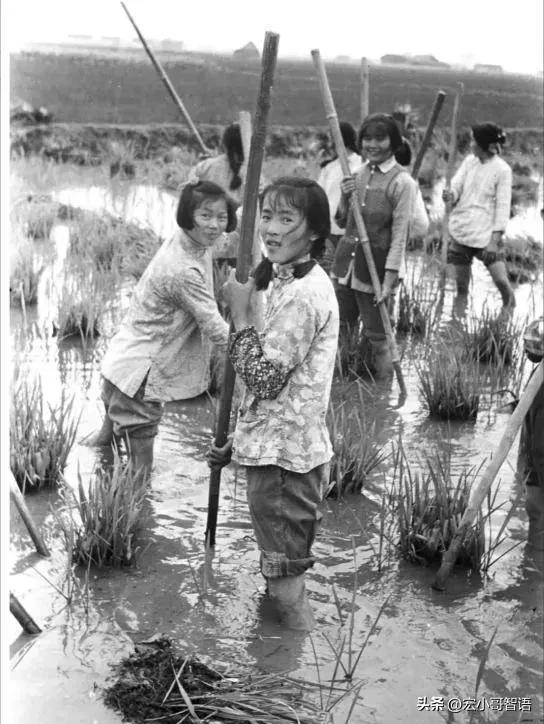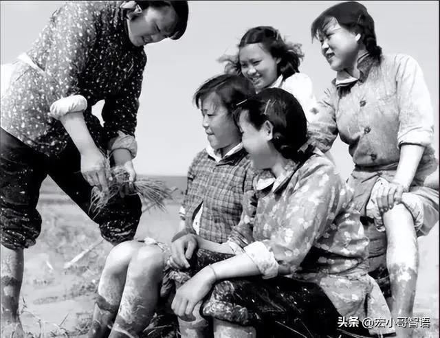 最后那张照片中,一群南方水稻田里干活的姑娘瞅见拿相机的人来了,都纷纷转头看了过来。她们清澈的眼神和纯真的笑容,仿佛让我们看到了那个时代的缩影。她们是知青中的代表,也是那个时代的象征。她们的青春和热血,将永远铭刻在历史的长河中。