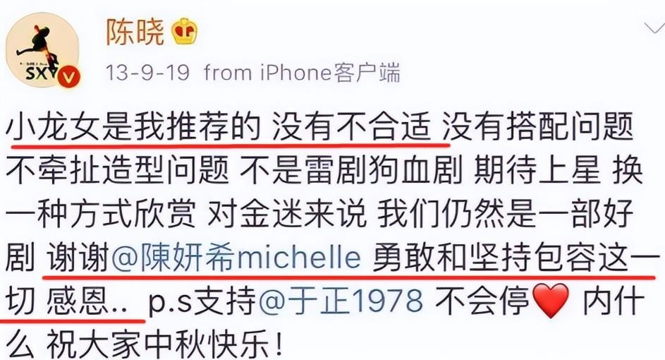 尽管陈妍希的情史被媒体深挖,陈晓仍毅然决然地选择了她,甚至不惜影响自己的事业。