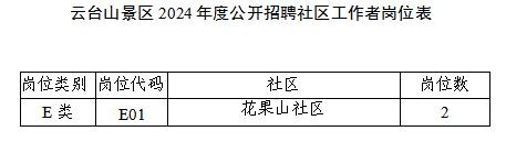 海州区全区计划公开招聘、择优录用社区专职工作者35名,云台山景区计划公开招聘社区专职工作者2名。其中,A类岗位21名,B类岗位7名(仅面向符合招聘条件的2024年毕业生),C类岗位6名(仅面向海州区当前在职且在社区连续工作满1年的社区专职网格员),D类岗位1名(仅面向海州区注册满1年且有月收入流水的新就业群体人员,新就业群体人员指:快递员、外卖配送员、网约车司机、货车司机、网络主播),E类2名(符合A、B岗条件的可报考E岗位)。