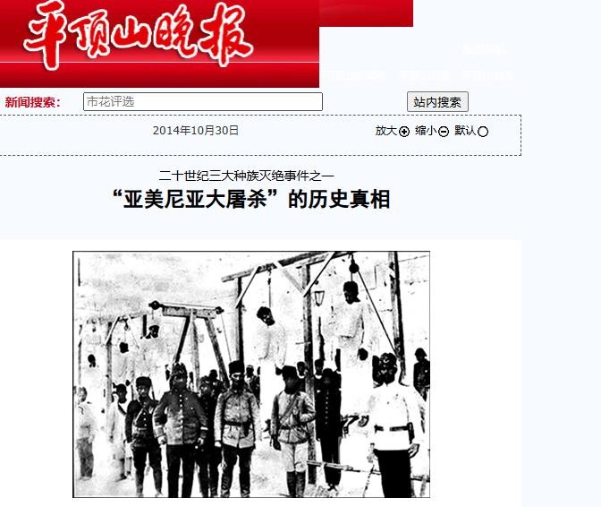 二十世纪三大种族灭绝事件之一“亚美尼亚大屠杀”的历史真相,平顶山晚报,2014年10月30日