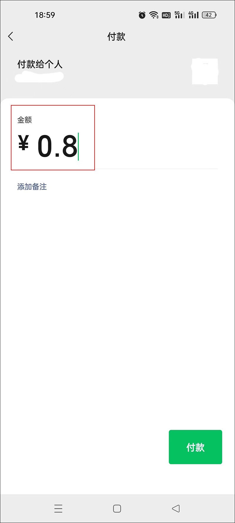 这里再给大家说一下金额输入的方式,上面我们说了三块二的输入方法,那如果我们的菜钱只有8毛怎么输入金额呢?8毛的话输入的金额就应该是0.8,因为金额都是以元为单位的,10块钱就是输入10,两块三就是2.3。