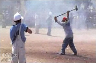这抡大锤的也太大意了,差点开瓢,扶钢千的也大意