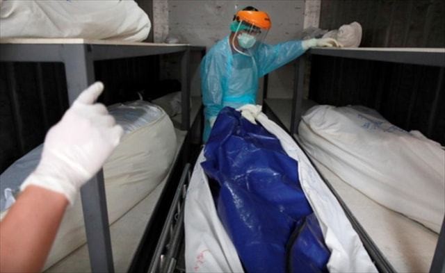 密密麻麻的裹尸袋,有的因为裹尸袋质量不好而露出了逝者狰狞的脸,即便带着口罩,还是会传来浓烈的刺鼻气味。