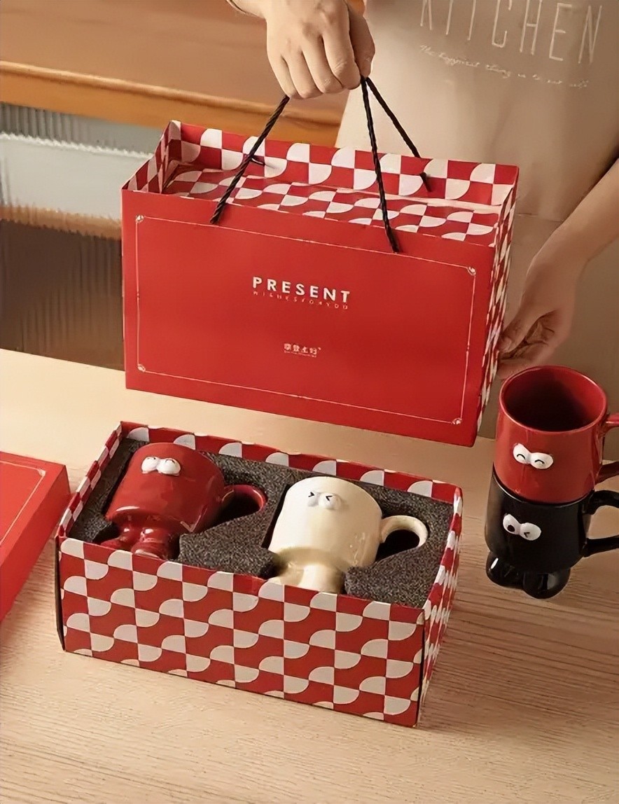 如果想要送点实用的,那这个马克杯可以看看,毕竟每天都要喝水~这个是有三个颜色,红黑白,可以根据喜好组成情侣款,比如红白、红黑、黑白都不错,买一样的颜色也OK。