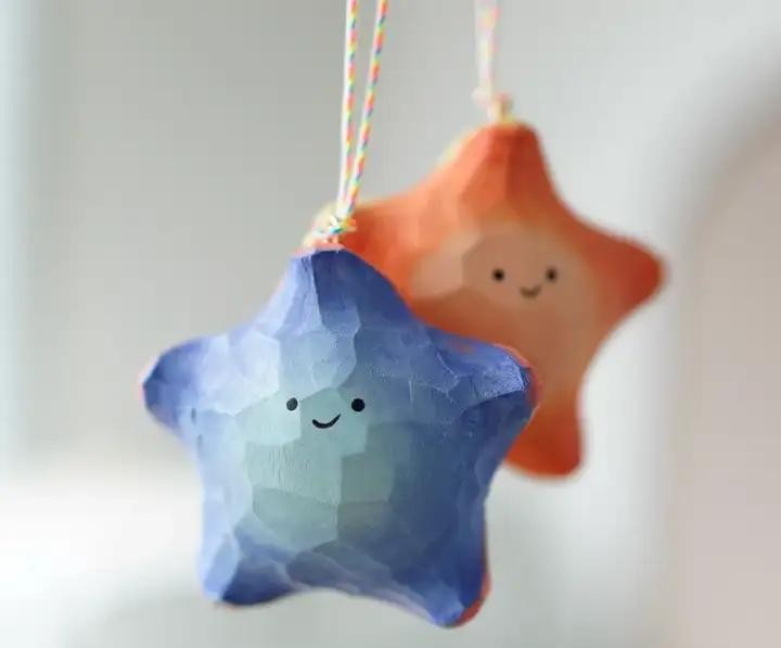 爱一个人总是希望ta幸福好运一切顺利,这个礼物就是一个星星造型的木雕,有两个颜色蓝色和橘色,还可以用来做情侣款挂件。