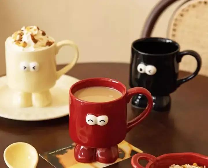 杯身上有可爱的小表情,三款都不一样,还有小脚脚~对啦这款是可以进微波炉的,所以喝点热水牛奶加热麦片都可以,如果想买一对,还有这种礼盒装哦~