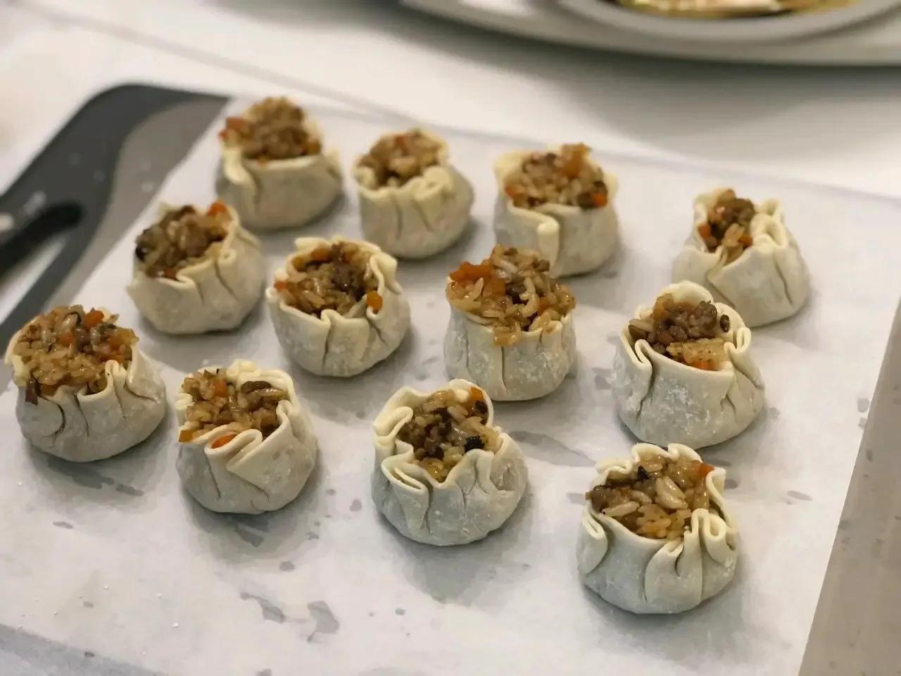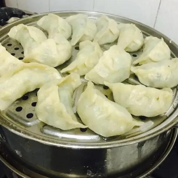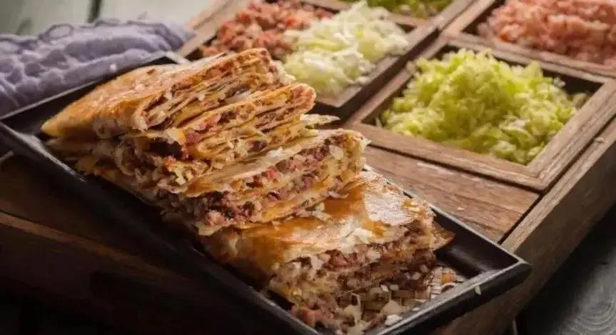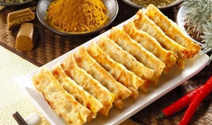 卧式烧卖清真风味小吃,形如大饺子而露馅,提蓝沿街叫卖,食时浇以蒜汁,别具风味。