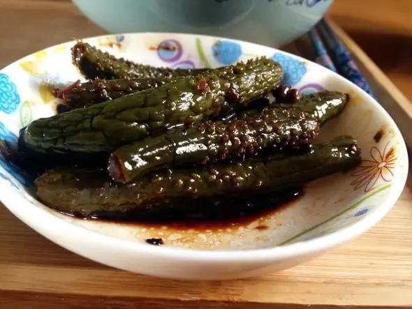 酱乳黄瓜选料特别讲究,要早晨出太阳之前采摘雨露滋润过的,身上带绒毛的顶花带刺、母指粗细、五六寸长的乳黄瓜,且中茬为佳,头茬黄瓜光照充分虽鲜嫩但维生素及其它营养成份降低,晚茬黄瓜枝蔓老化营养吸收不充分易萎缩、中空畸形,不够肥硕。将选好的碧绿鲜嫩乳瓜洗净晾干加入特制的甜面酱中定期搅动,黄瓜由翠绿变成深绿,遍体透出酱色时已制成酱瓜了。