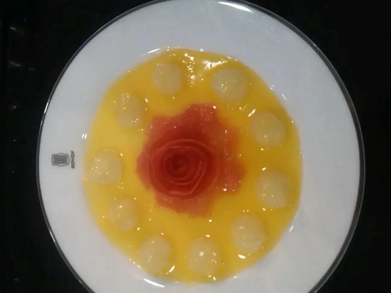 瓜盅哈什蚂油是在传统制作工艺上加以创新改进而成,即将制好的哈什蚂油盛在雕刻精美的香瓜盅里,具有外表美观,制作精美,口味独特、营养丰富的特点。