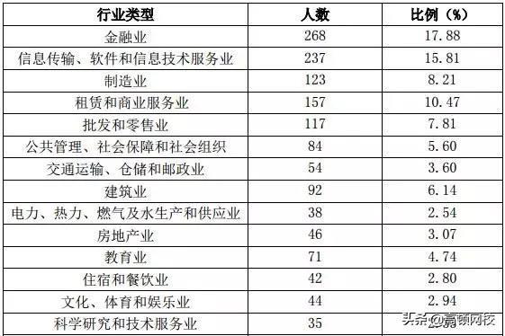 硕士主要集中在:金融业,信息传输、软件和信息技术服务业,房地产业、建筑业。