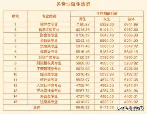 软件类、信息 IT 类专业学生起薪最高,平均月薪 分别为 6941.89 元、6167.66 元。而作为我校典型专业的财会类、金融类、贸易 类专业,毕业生起薪分列其后,分别为 6068.09 元、5791.09 元和 5549.02 元。
