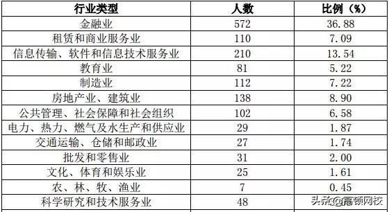 行业集中于服务业,流向前三:金融业、IT业、租赁和商务服务业。
