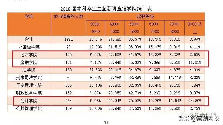 中国薪酬网在今年年初的时候公布了一份2018年中国大学毕业生薪酬排行榜,在财经院校中,对外经济贸易大学、中央财经大学、上海财经大学、上海对外经贸大学的应届毕业生薪资进入到Top20,对外经济贸易大学的毕业生薪资超过复旦、同济这样的985/211院校!