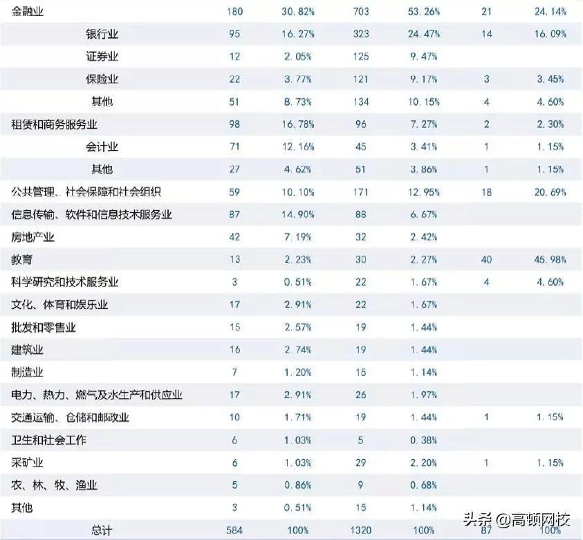 毕业生在金融行业的总体分布为37.79%,均高于其他行业。