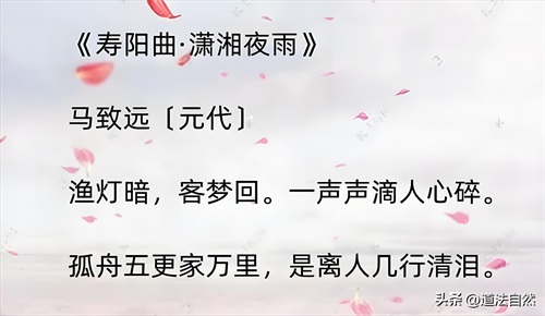 创作背景:马致远在漂泊途中经历多次离别,途经潇湘之地时恰逢雨夜,勾起内心的伤感。