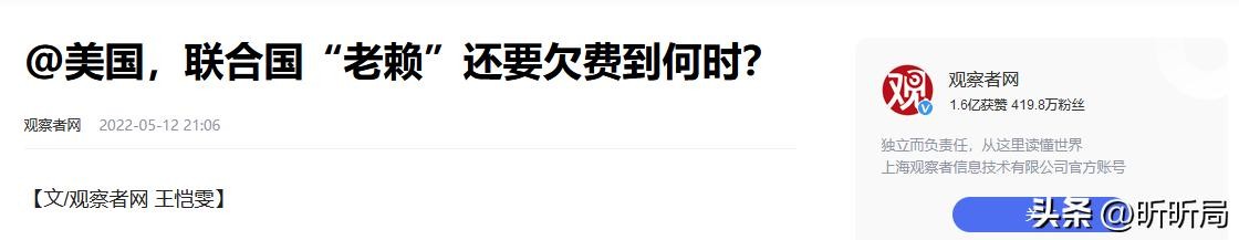 观察者网:2022年5月12日 @美国,联合国“老赖”还要欠费到何时?