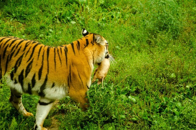 再加上来往的工作人员和游客不停地给它们投喂食物,老虎的野性根本无法被激发出来,这与圈养老虎没有什么不同。