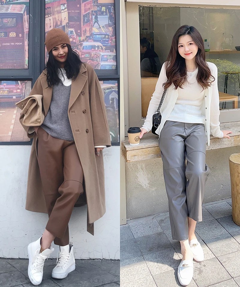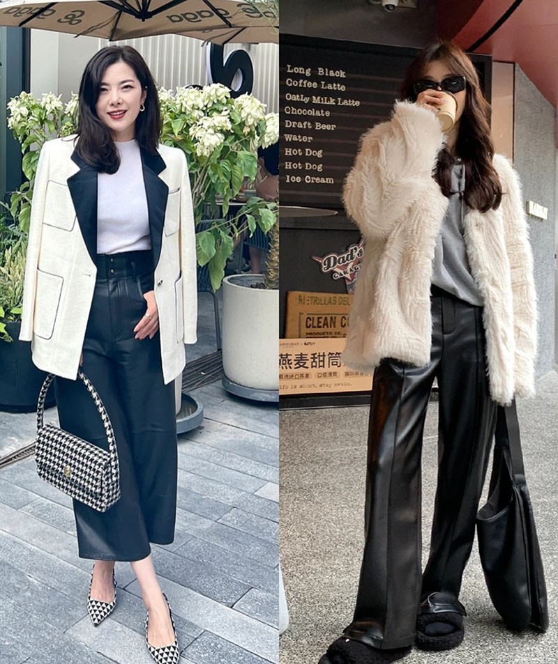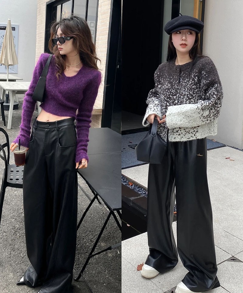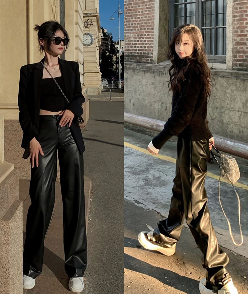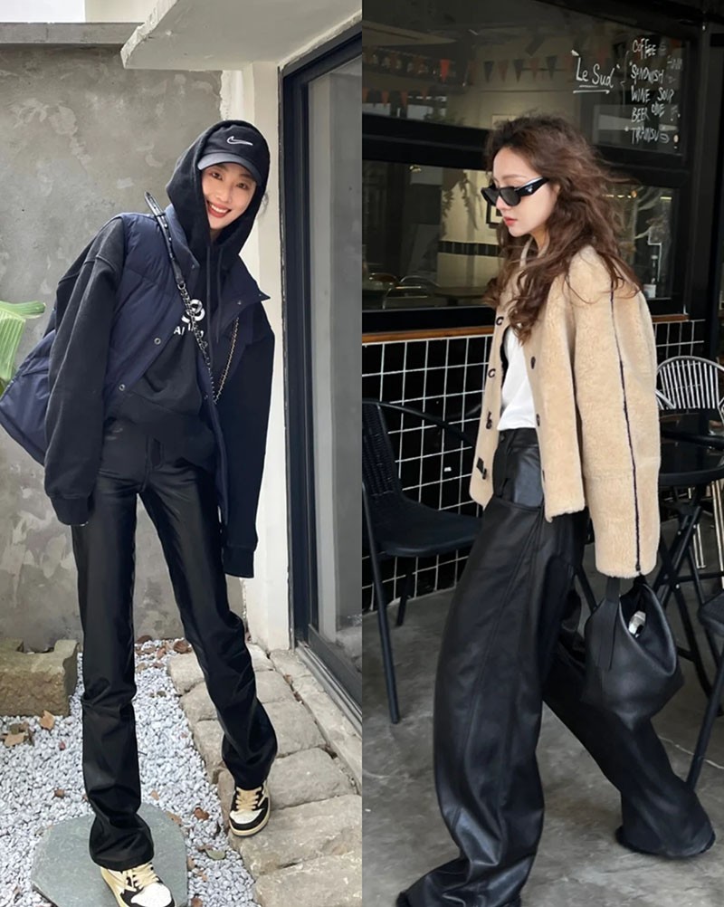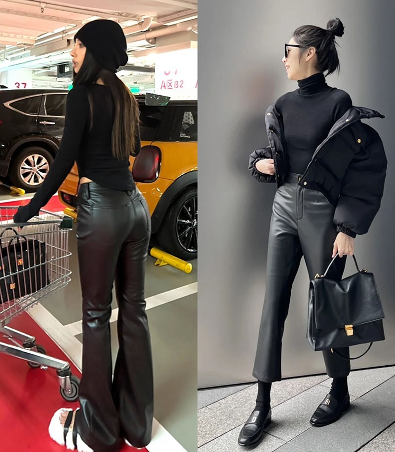 液体裤也是经过时尚潮流的洗礼,不断改良,以前的液体裤是修身版型为主,就是皮面紧身裤,尽管它能修饰腿型,但对腿部条件的要求也很高,没有修长纤细的双腿,还真没法将液体裤穿出时尚感,只会暴露腿粗的缺点。