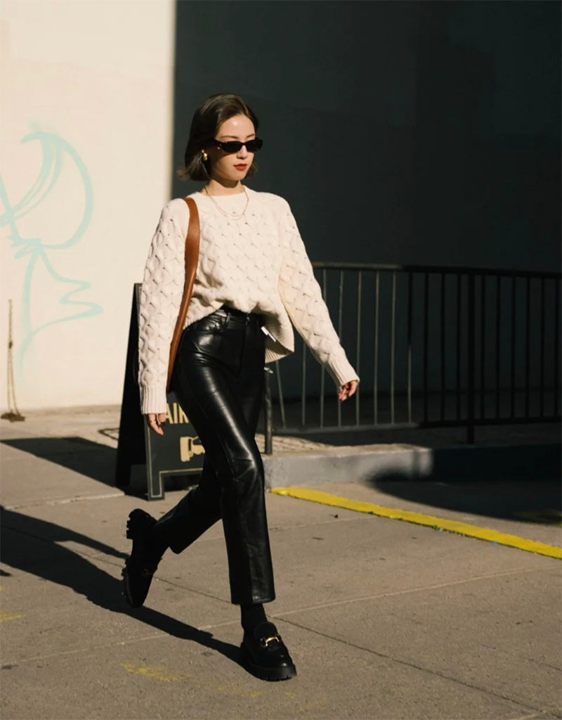 潮人们不会满足于外套和液体裤的组合方式,上衣单品的选择更加丰富,款式更多,即使选择普通的毛衣,也会有出其不意的时髦感。