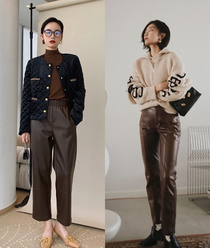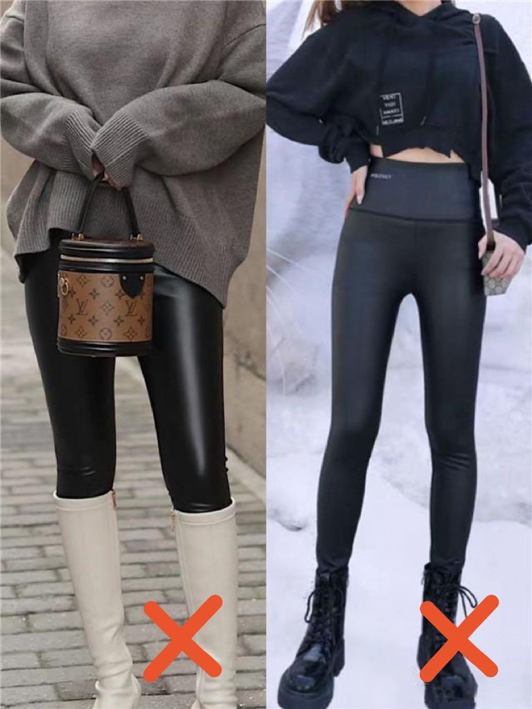 除了黑色液体裤,还有其他颜色,不建议选择亮色的液体裤,看上去特别夸张,还容易穿出土气俗气感,尽量选择低调的颜色,比如土咖色、棕褐色,更耐看又显高级。