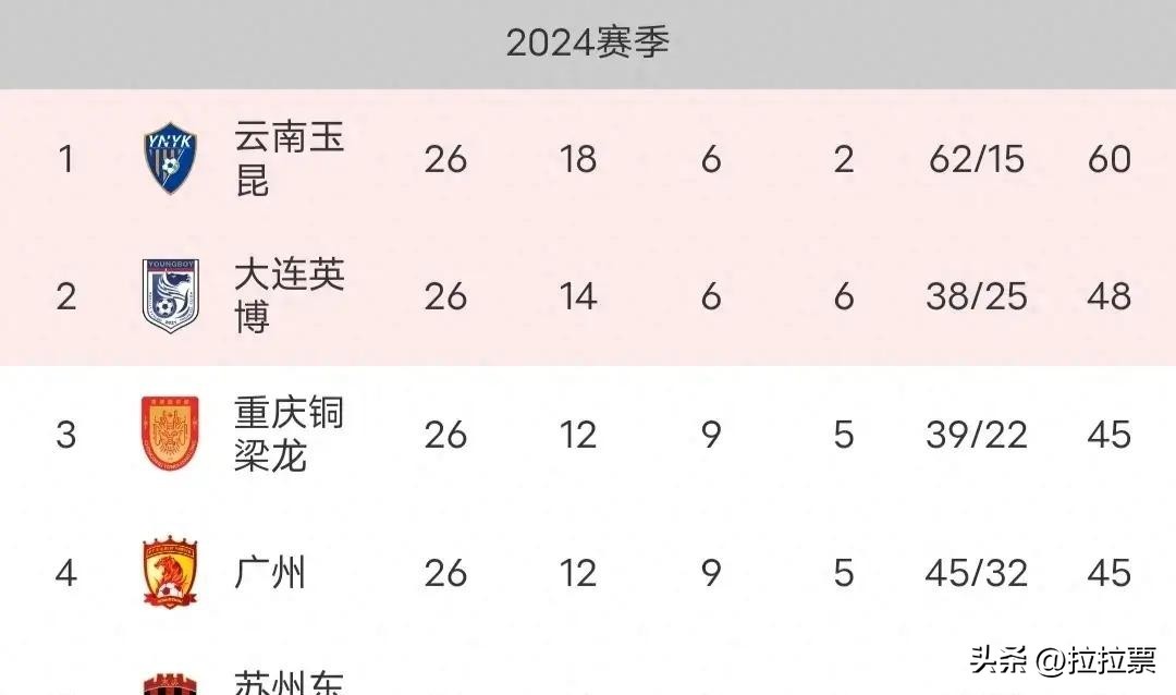中甲最新排名云南冲超成功,大连第二,重庆第三,广州第四!