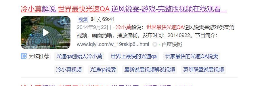而真正让冷小莫成为顶尖解说的,还是那一部“世界最快光速QA”的锐雯视频。